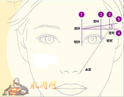图片来源 ▲眉峰的修整高度,可以参考图片的比例原则!