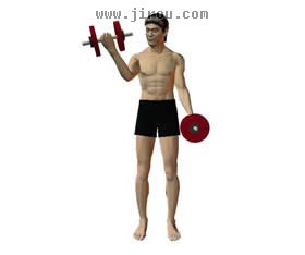 通过扭拧哑铃的过程,实际也锻炼了在肘关节附近的肌肉。